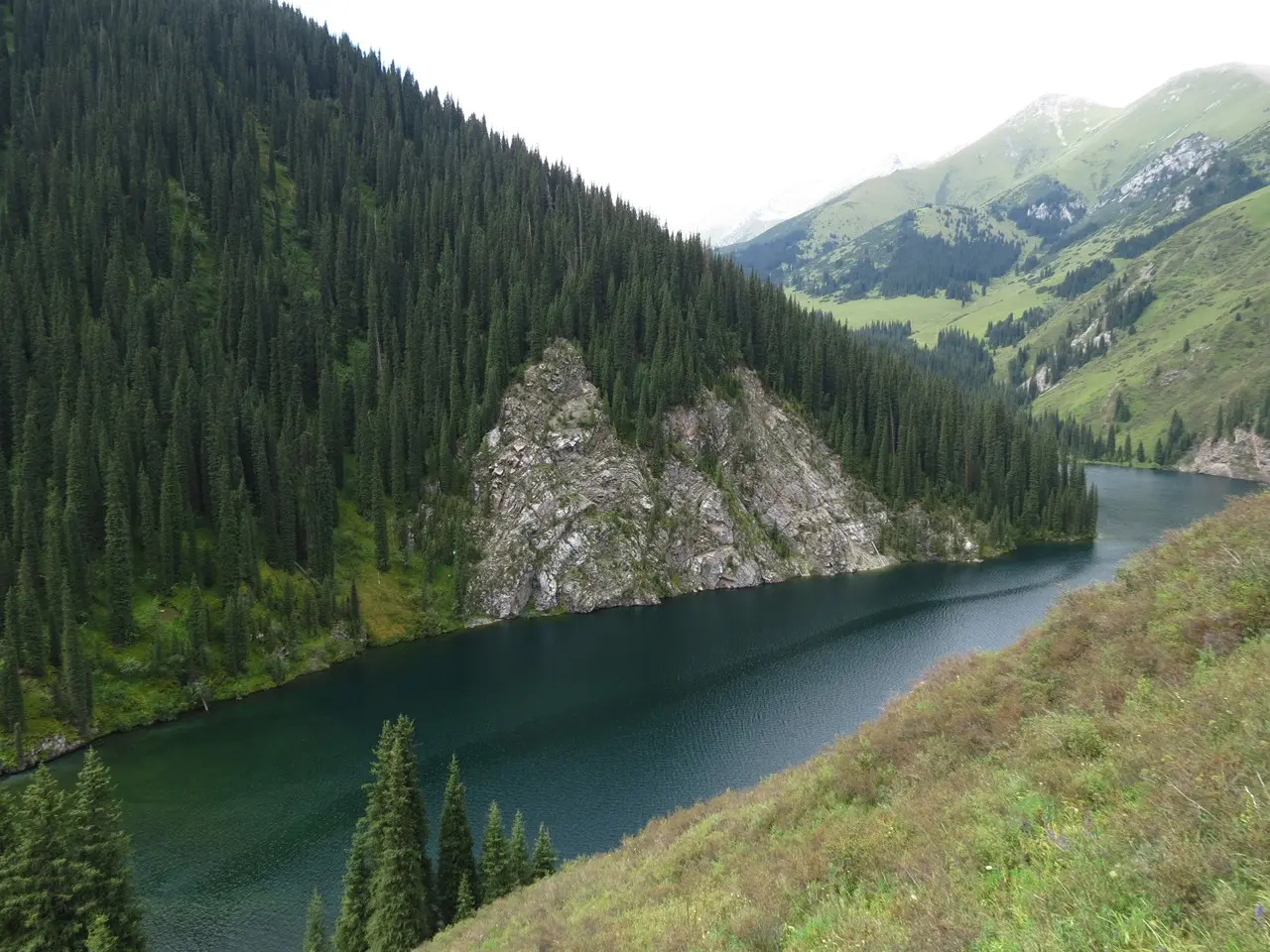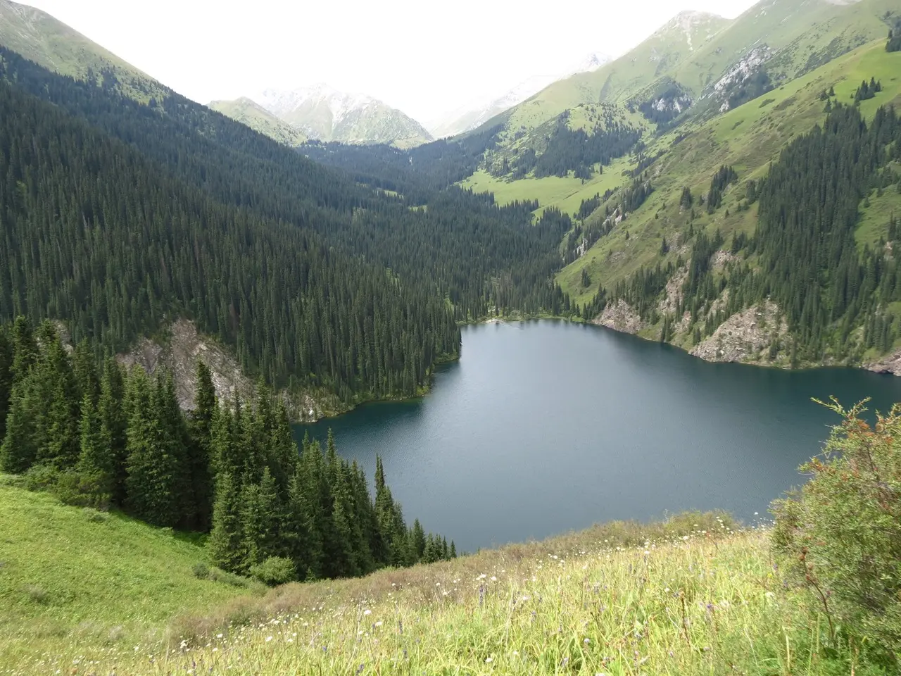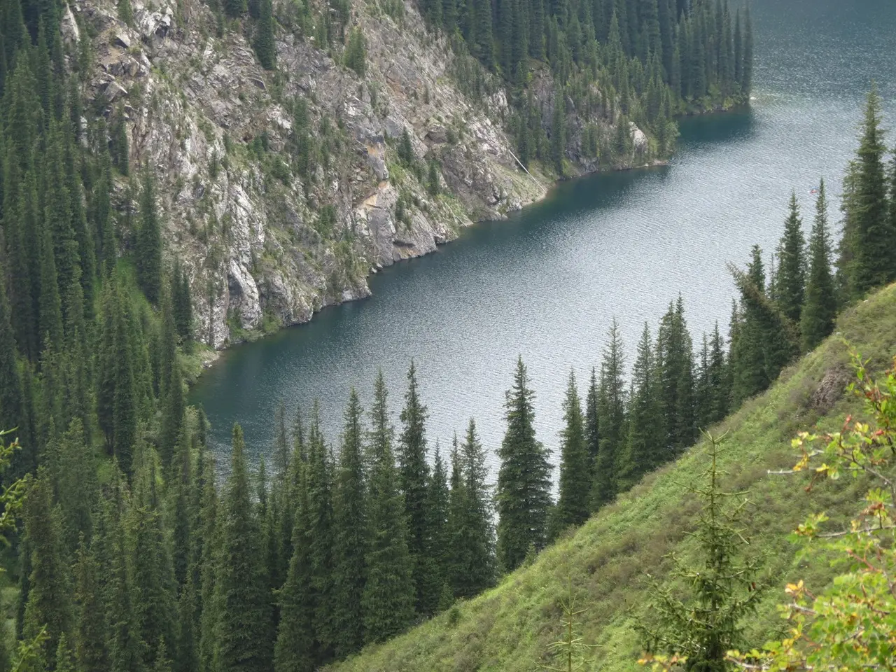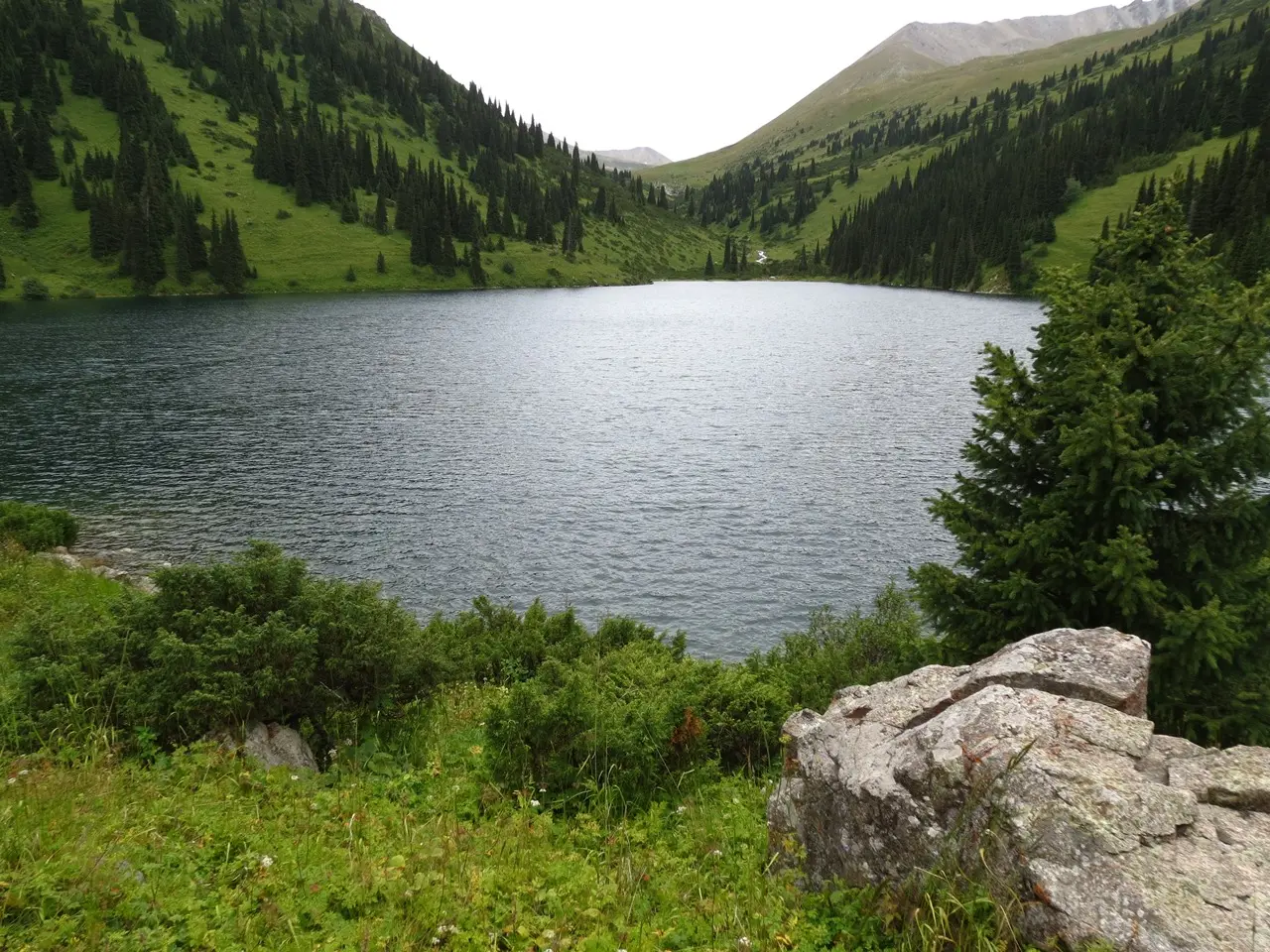 Место, которое открывается перед вами, именуют Тянь-Шаньской жемчужиной. Озера, аналогов которым в мире нет, называют просто «Кольсай Один», «Кольсай Два» и «Кольсай Три». Последний водоем располагается на высоте 2640 метров над уровнем моря. Все эти озера были образованы посредством схода мощных оползней. Из-за этого река не смогла продвигаться дальше и остановилась. Примечательно, что вода во всех трех водоемах достаточно темная, при этом они считаются проточными. Их соединяет между собой одноименная река. В первых двух озерах можно встретить и ловить форель.
