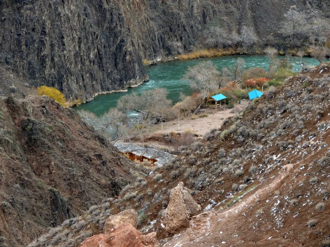 На территории каньона можно встретить уникальную реликтовую ясень (Ясень – Согдийский). Этому дереву удалось пережить разрушительное оледенение существовавшее до «Четвертичного периода», когда многие виды растений и животных были уничтожены! Во времена миоцена и плиоцена здесь плескались воды древного Иллийского озера. Площадь рощи Ясенея Согдийского достигает почти 5 тысяч гектаров. В нижнем течении реки находится Туранговая роща — роща азиатского тополя. Рядом, у долины реки, можно встретить густые заросли барбариса, тамариска. Помимо оригинальных представителей флоры, встречаются привычные нам ивы с тополями.