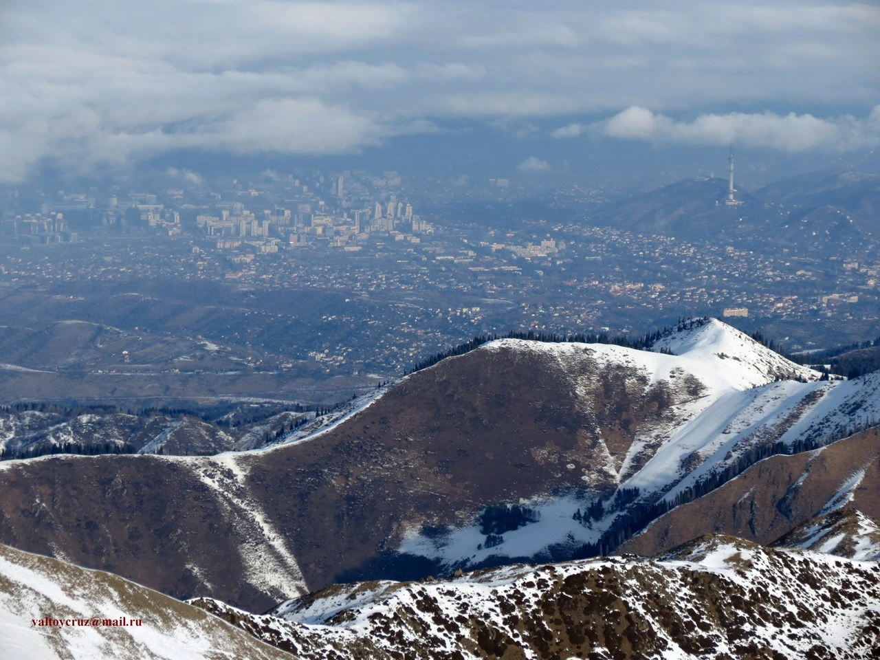 - Удивительные по красоте своей получаются фотоснимки на этом маршруте. Совершая восхождение на гору Туристов, перед нашим взором постепенно открываются панорамы на севере на пик Большой Алматинский 3681 м., и город Алматы, на востоке высшую точку Заилийского Алатау — пик Талгар 4978 (5010), на юге виден Киргизский горный хребет Кюнгей-Алатау и красивый Чаткальский гребень высотой 4760 м.