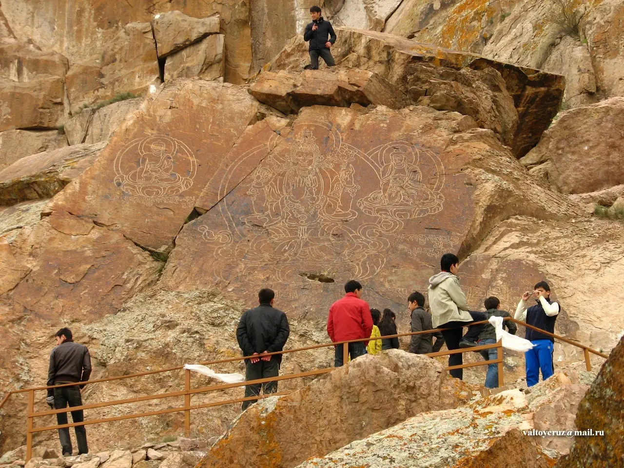 Изображения Будды символизируют миролюбивую культуру народов, населявших территорию Семиречья, которые располагались в северном направлении Великого Шелкового Пути, где был необходим мир и спокойствие для сотрудничества разных народов и стран Азии, Европы. Этот фрагмент «Писаных скал» относится ко II веку до нашей эры, это редчайший петроглиф на нашей планете!