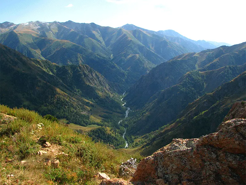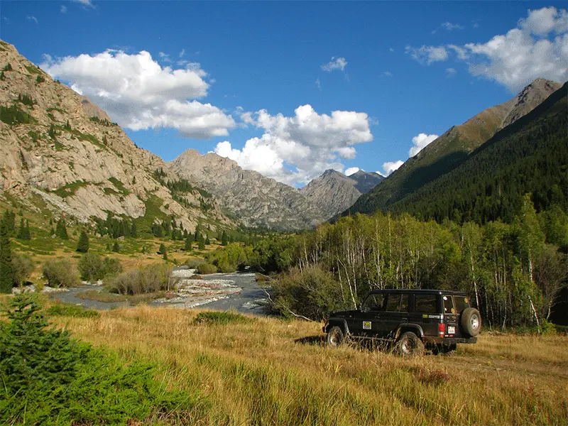 Первые километры вы едете по дороге из грунта. Она проходит вдоль правой стороны ущелья «Коры» и лес из различных деревьев. По дороге вы увидите как рощи, насыщенные березами, уступают свое место густым кустарникам. В этих местах вы можете воочию увидеть знаменитую яблоню «Сиверса». Несмотря на довольно тяжелый путь в 50 километров, вы совсем не устаете, ведь наслаждаетесь великолепными пейзажами.